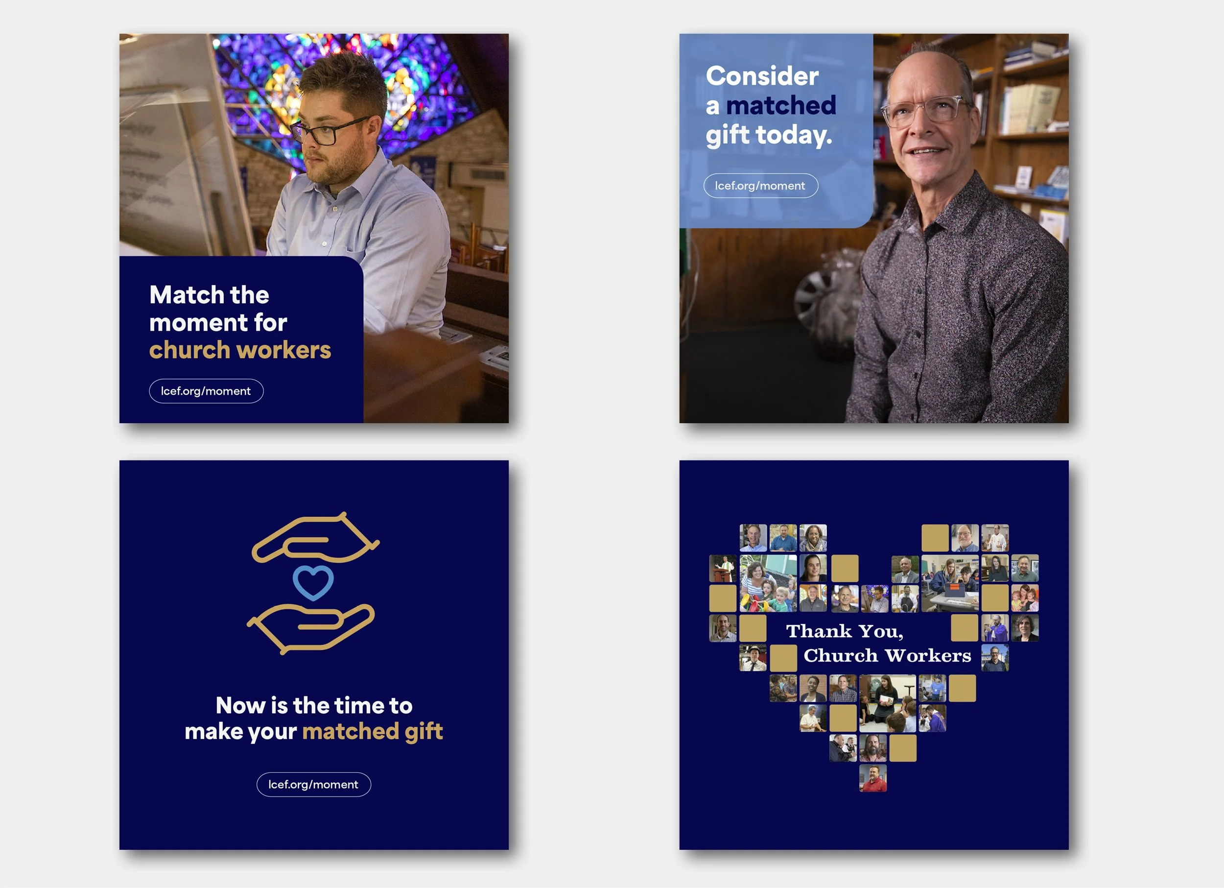 Lutheran Church Extension Fund (LCEF) social media for the “Match the Moment” digital marketing campaign to support church workers. My role involved all design aspects, from concept to execution.